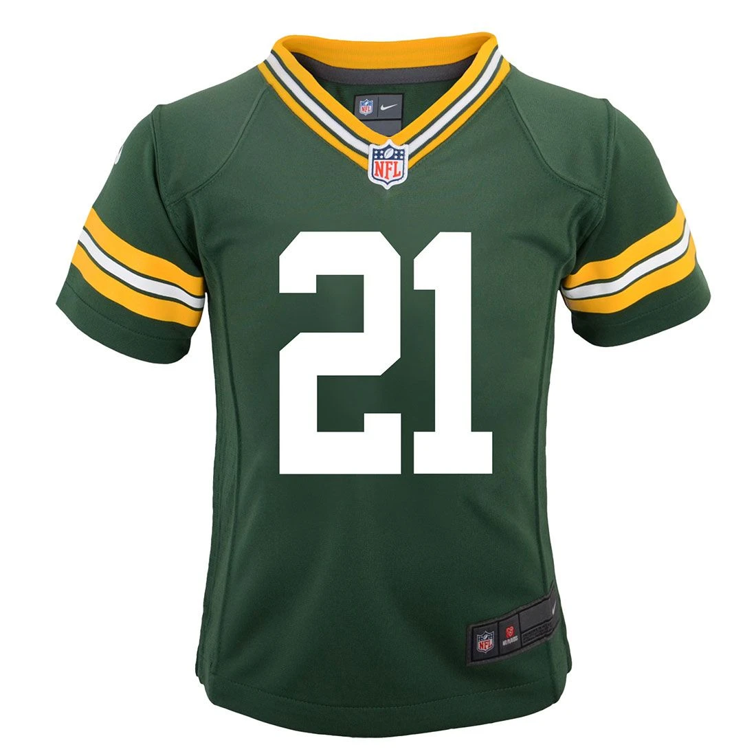 Stay true to your team all day, every day, game day. Green Bay Packers Nike Game replica jersey is inspired by what the players are wearing on the field. Polyester knit body with mesh side panels is designed for total comfort and movement. Strategic ventilation for breathability and printed numbers and letters provide a light and soft feel. Woven jock tag at front lower left.