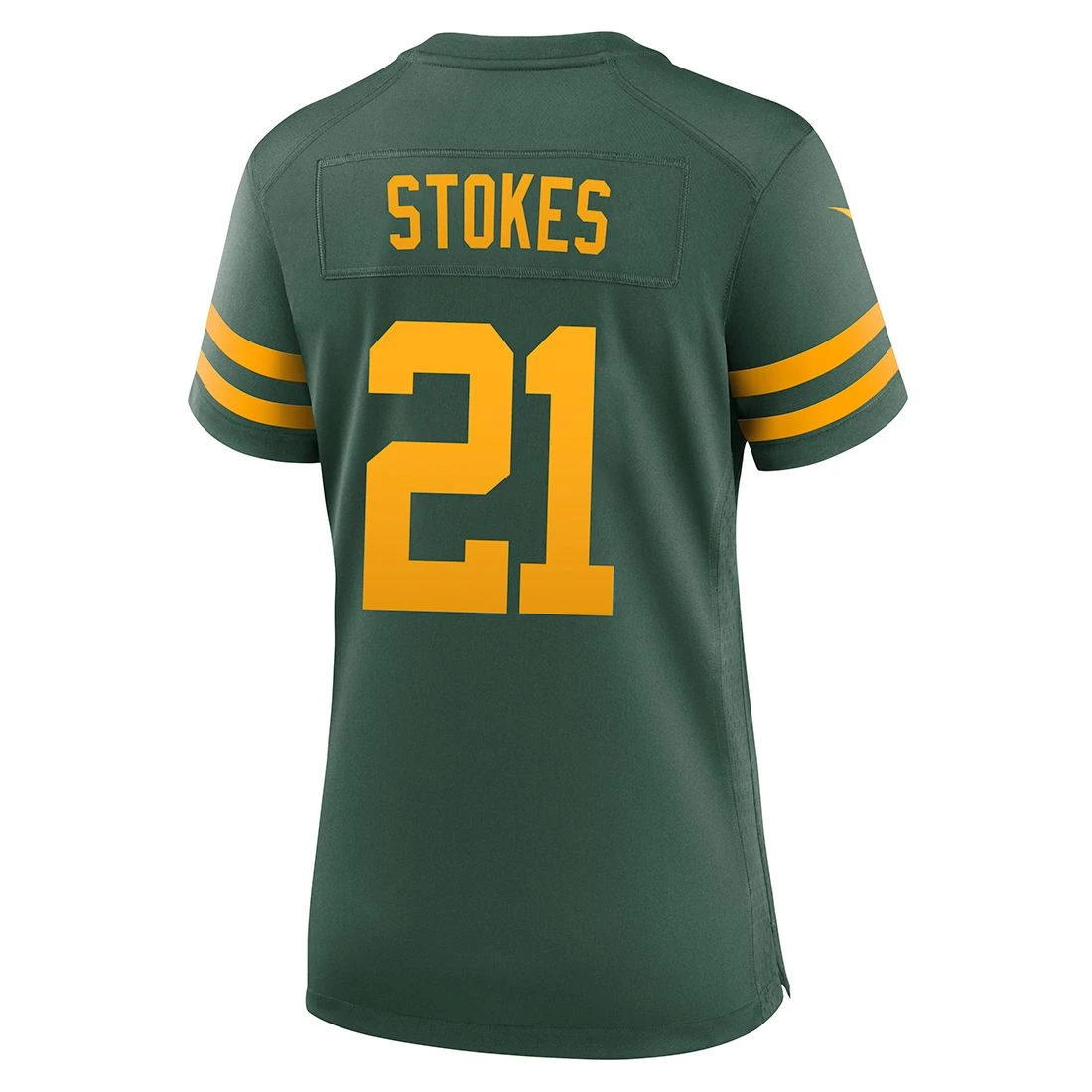50s Classic Packers Nike Game Replica Jersey is inspired by what the players are wearing on the field, but cut for women. Tailored fit is designed for total comfort and movement. Strategic ventilation for breathability and printed numbers and letters provide a light and soft feel. Woven jock tag at front lower left. Made of 100% recycled polyester. Jerseys do run small. If you prefer a loose fit, we suggest ordering up one size.
