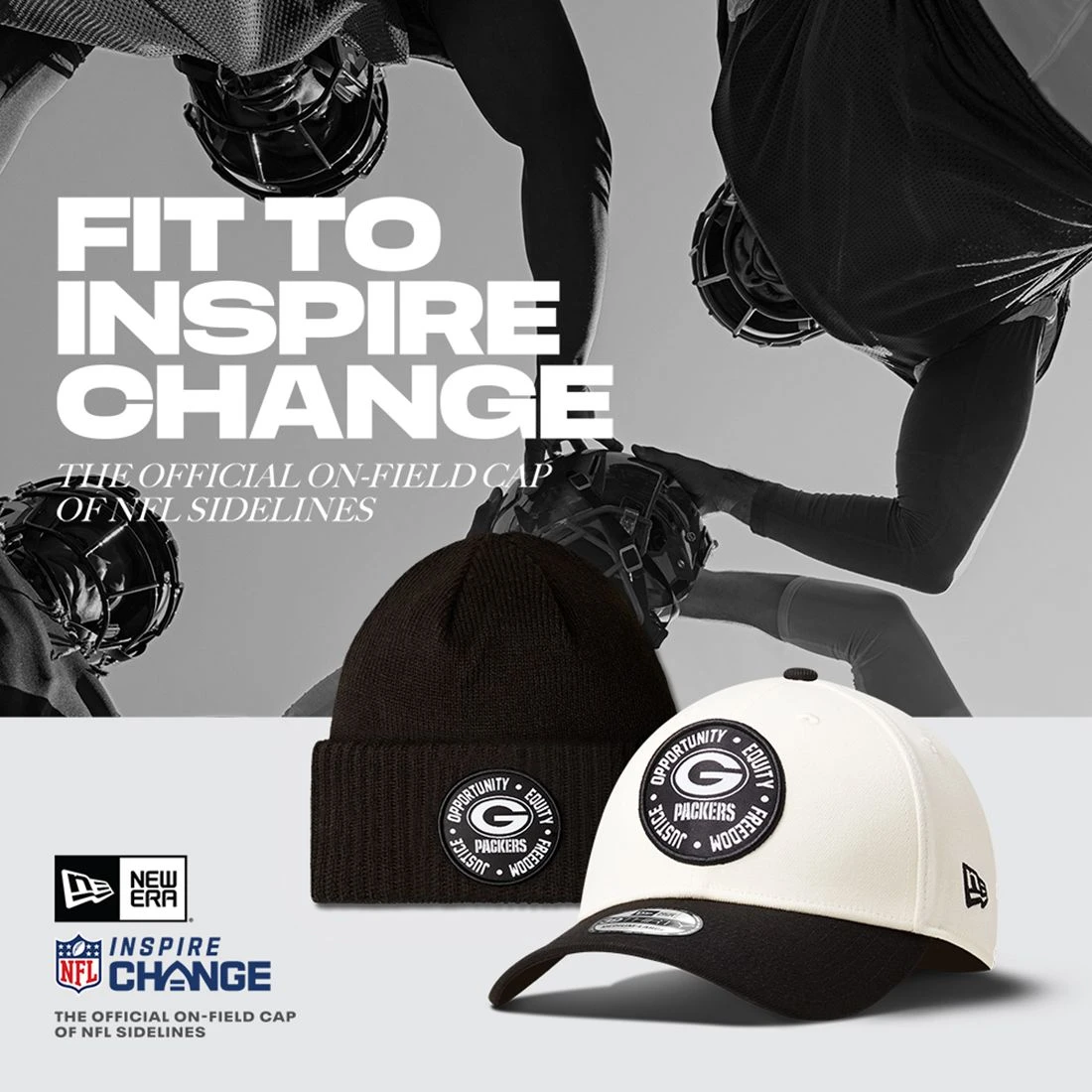 Promote change for good in the community with the NFL Inspire Change collection from New Era. 39Thirty stretch cap has applique patch featuring four focal points that support unity in social justice causes. Official Inspire Change patch at side. Polyester/spandex.