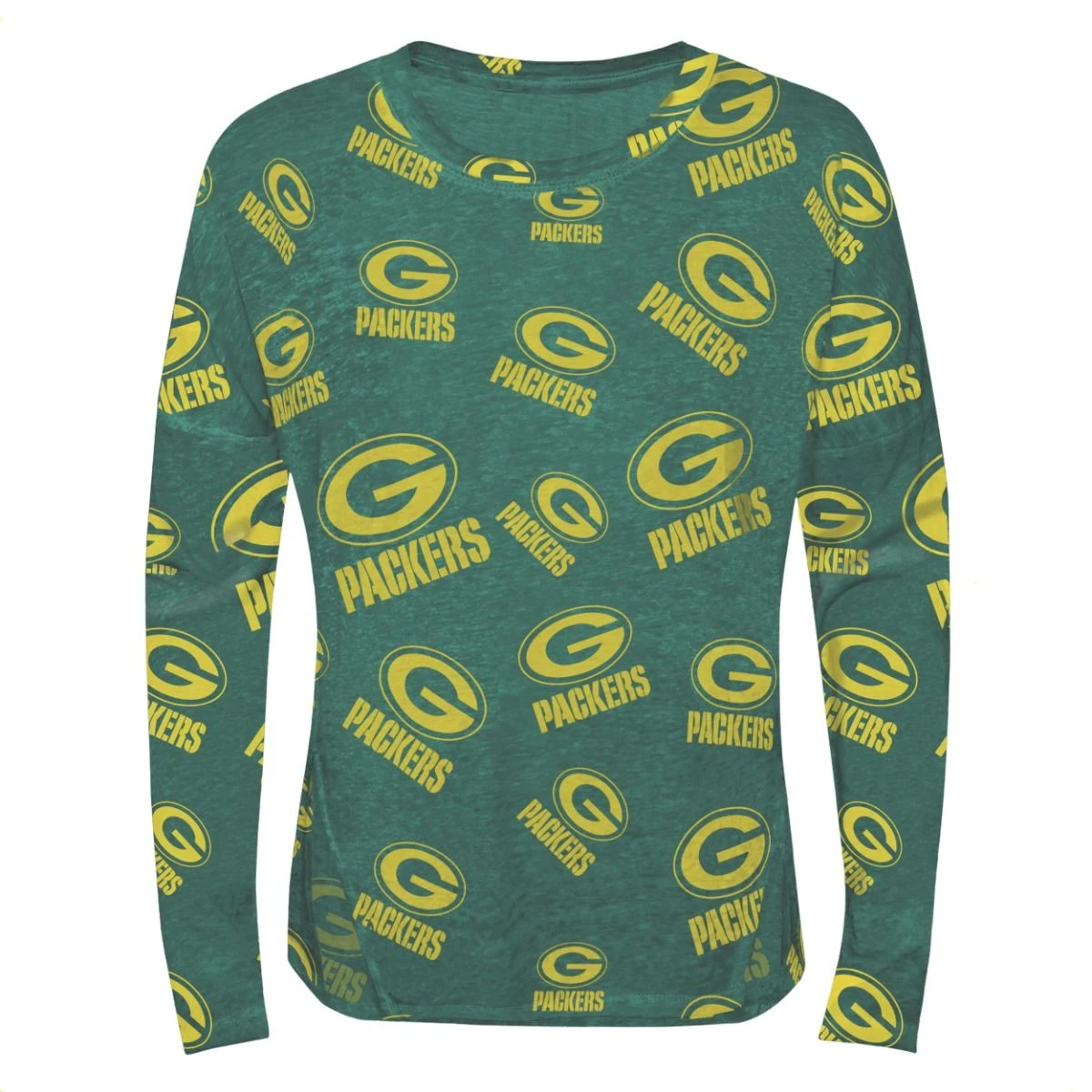 It’s okay if she wants to brag about her love of the Packers with this long sleeved light-weight top by Outerstuff. Heathered fabric has printed graphics and 5 1/2″ split hem. Cotton/polyester.