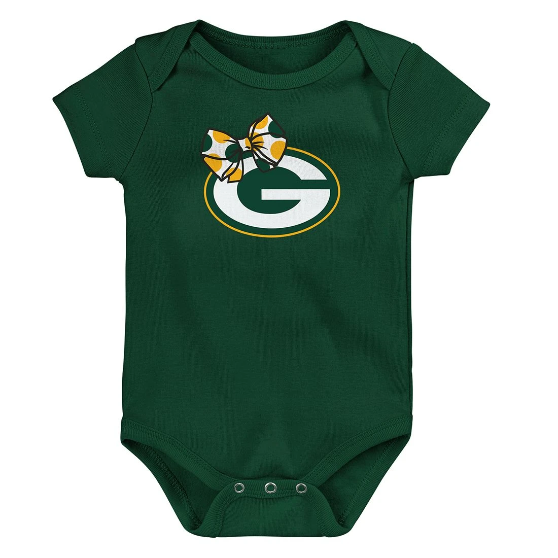 Even the littlest Packers fan needs some fan gear, and this bodysuit is just the thing for her. Cotton bodysuit has snap crotch and printed graphics. From Outerstuff.