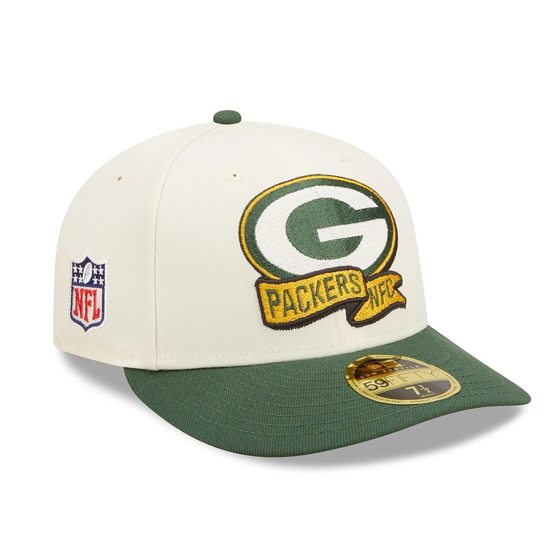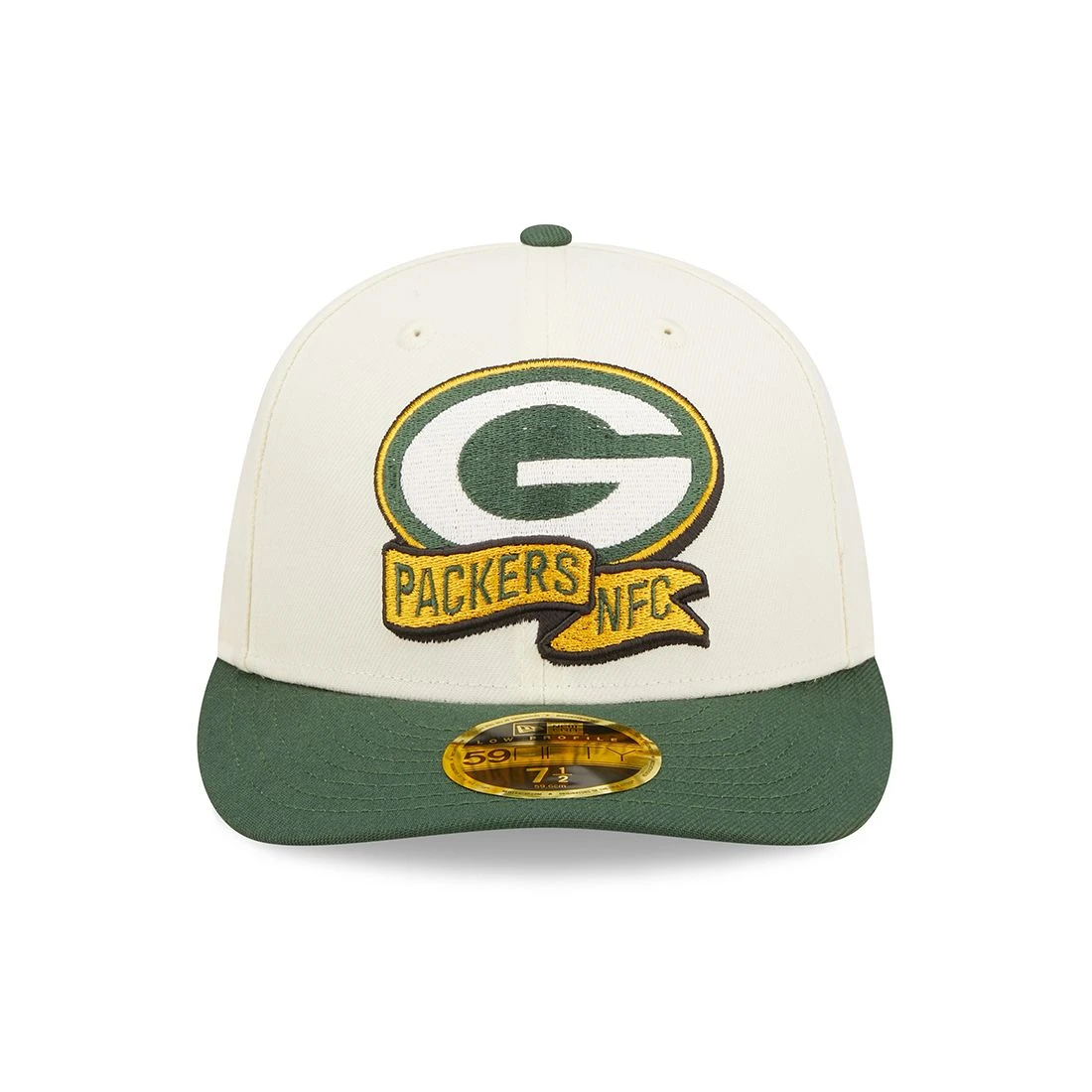 Wear the gear you see on the Sideline this season! The fitted 59Fifty cap from New Era features a low profile and contoured crown with curved visor. 2-tone cap has embroidered team logo and banner on the front crown, NFL Shield at side and G logo on back. Polyester.