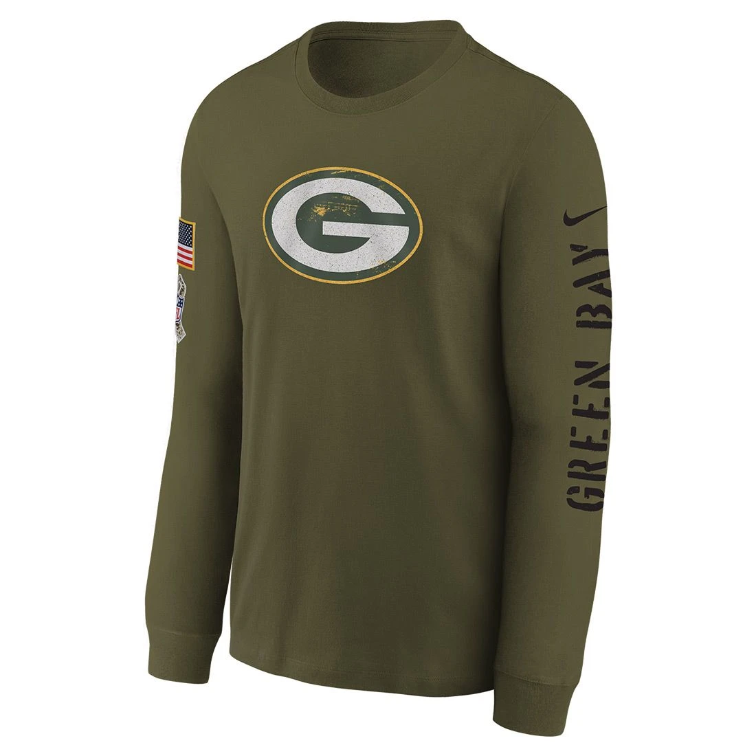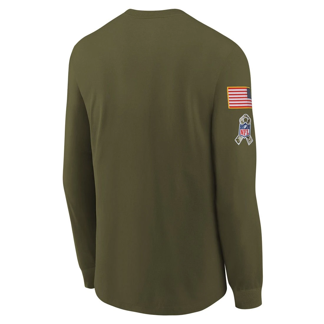 Gear up for gameday with this long sleeved t-shirt from Nike. Cotton jersey t-shirt has distressed printed graphics and STS detailing on sleeve. Charitable contributions are donated to the NFL’s military non-profit partners.