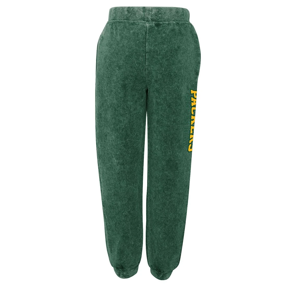 The younger ones want to kick back and show off their Packers pride with this pant from Outerstuff. Garment-washed fleece pant has rib knit elastic waistband and cuffs, on-seam pockets, printed graphics, and soft brushed interior. Cotton/polyester.