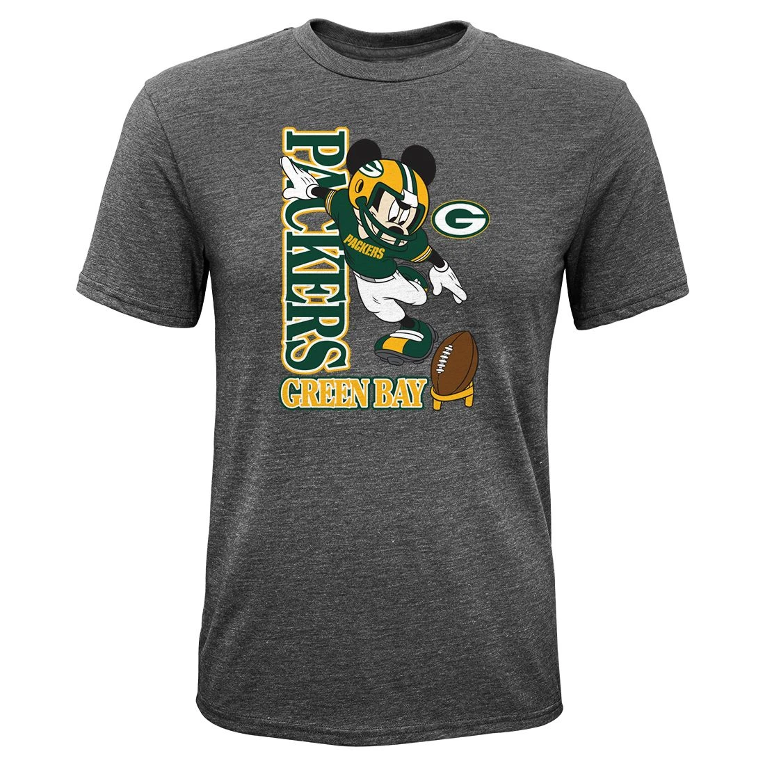 Bring them some magic featuring the Packers and Mickey Mouse with this short sleeved t-shirt from Outerstuff. Cotton t-shirt has printed graphics has Mickey trying his hand at kicking the football.